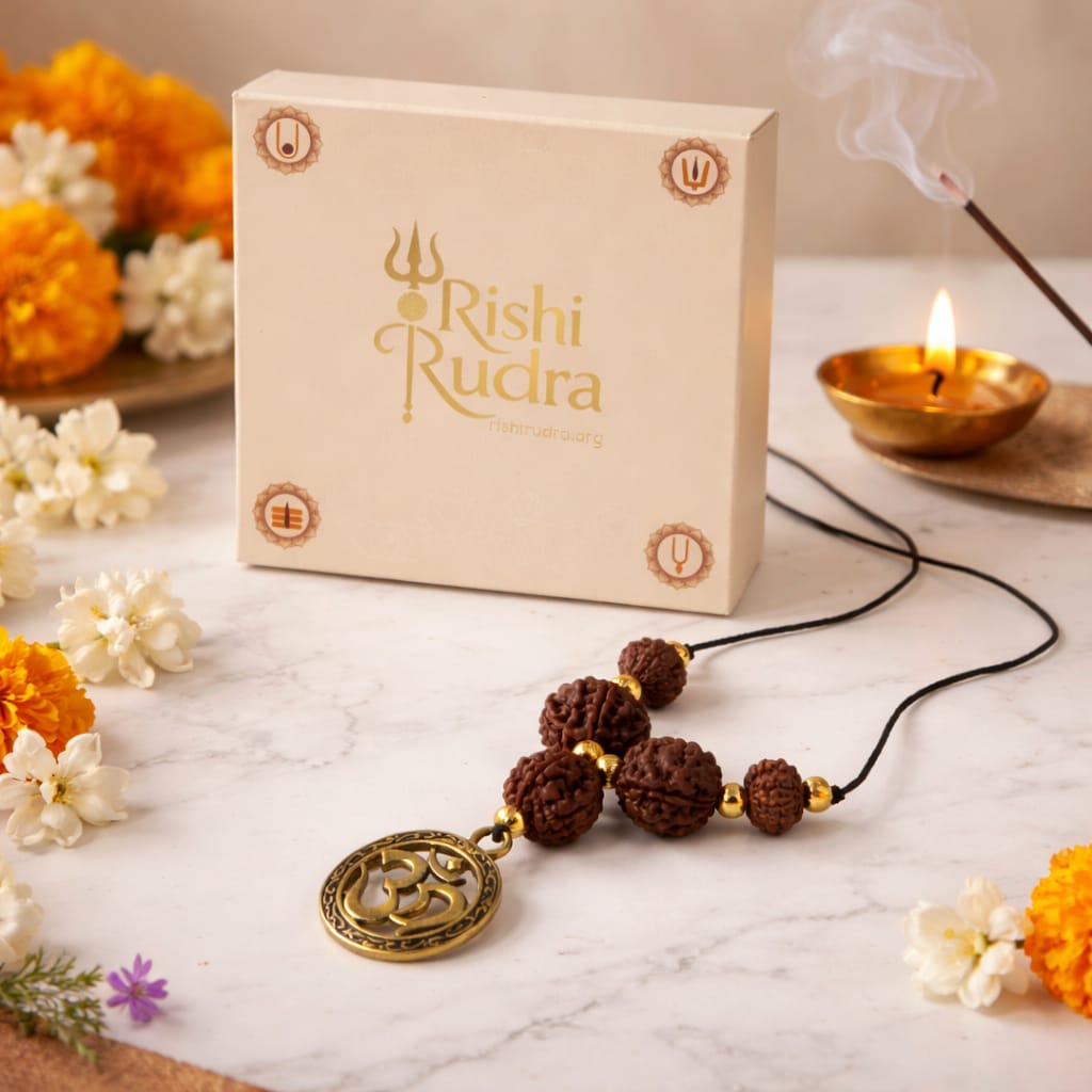 Shiv Raksha Kavach – 4 to 8 Mukhi Rudraksha Protection Mala with Om Locket | Blessed by Lord Shiva